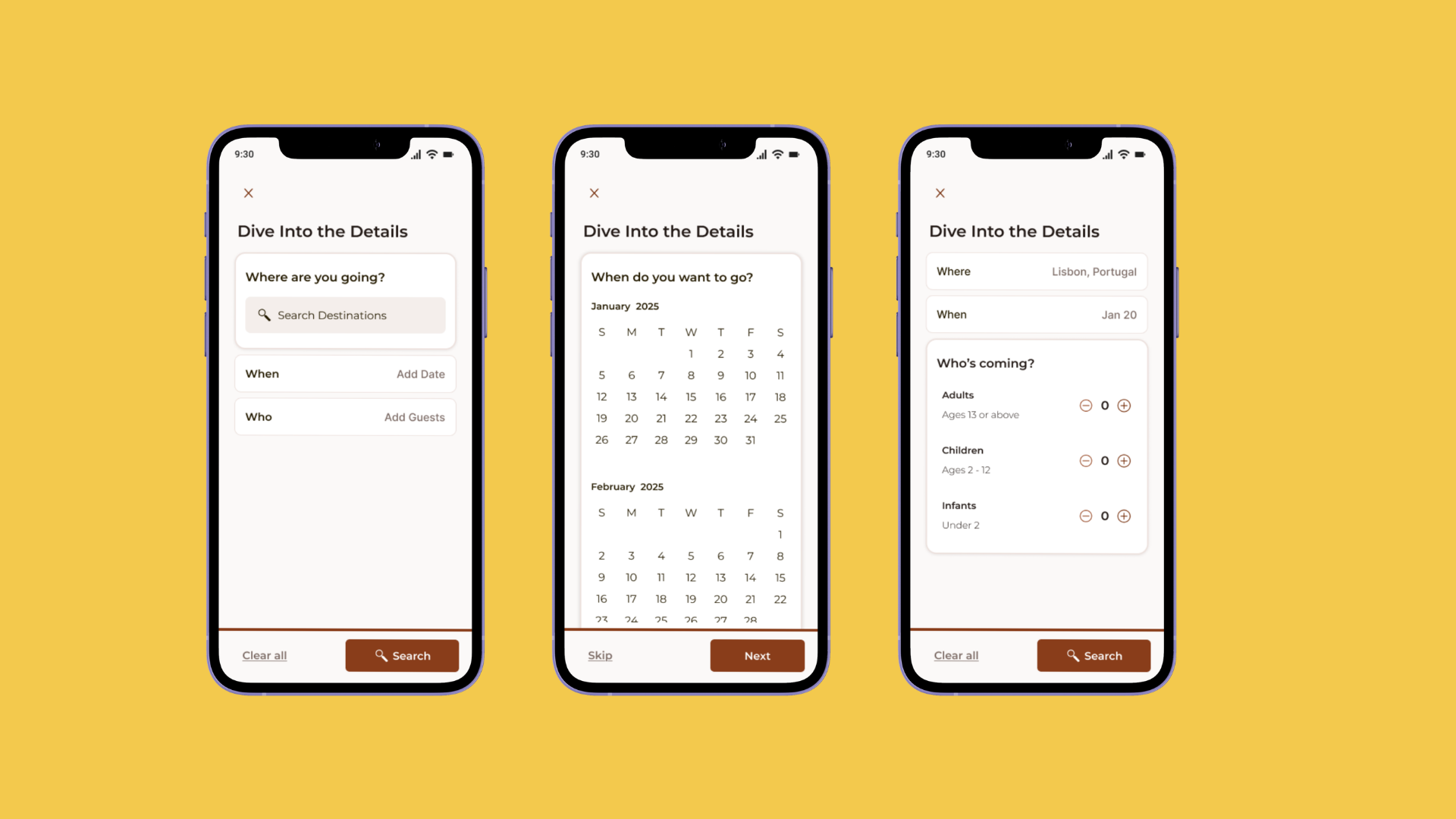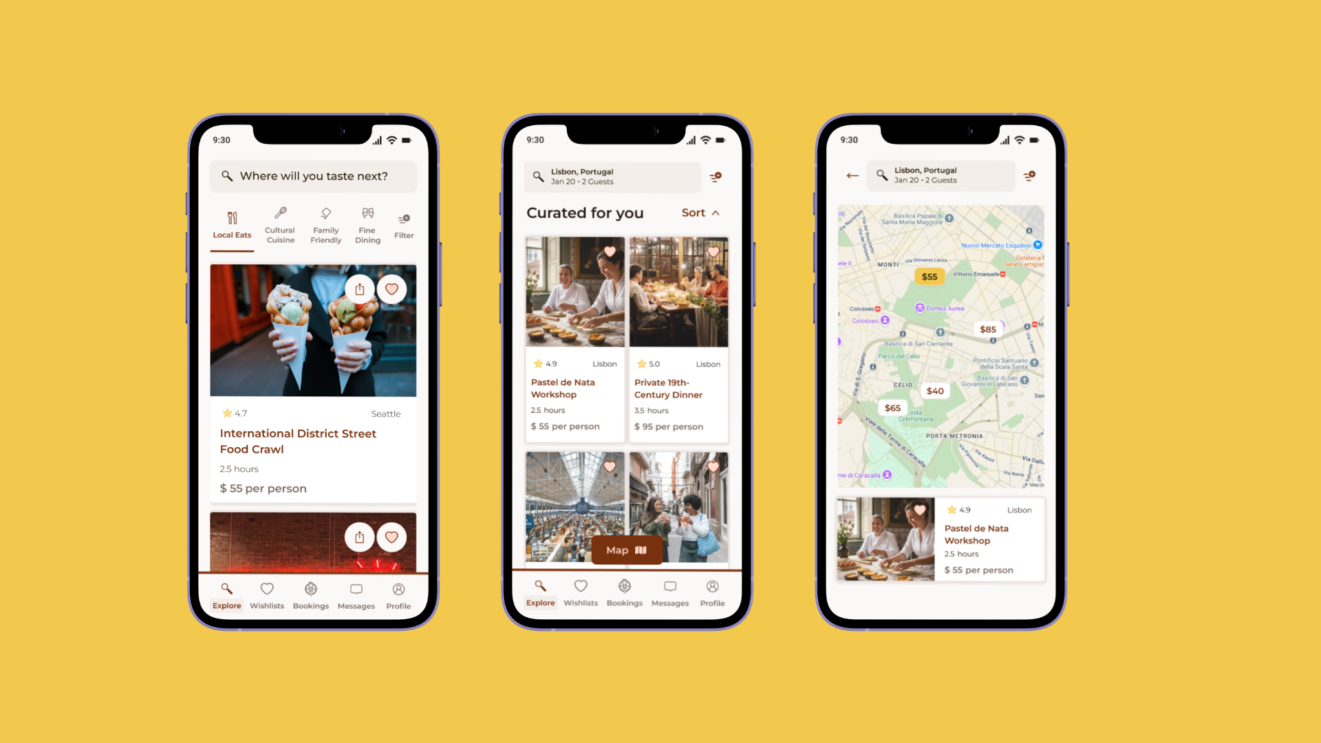 The Search and Discovery experience starts with a simple question: "Where will you taste next?" I wanted that first interaction to feel aspirational. To keep that momentum going, I broke the search flow into three quick, digestible steps, where, when, and who, so the user never hits that "blank form" fatigue. I was also very intentional with the language. Calling the results "Curated for you" rather than "Search results" changes the entire vibe; it signals that there's a thoughtful human element behind the suggestions. Finally, I brought in the map toggle as a direct response to what I saw in usability testing. Some people just need to see the world spatially to make sense of it, and this lets them orient themselves without ever breaking their flow.